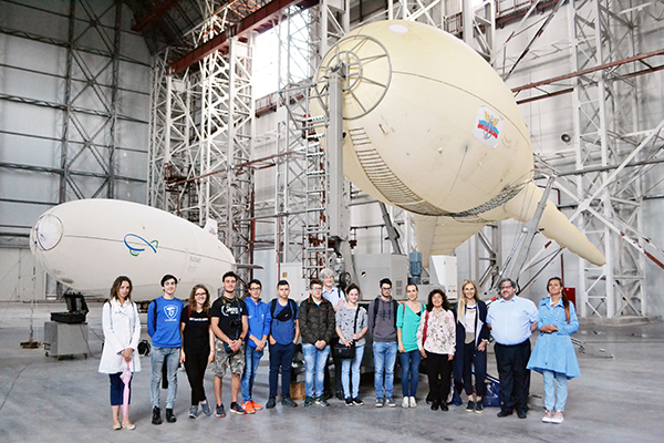 Гостям провели экскурсию в лабораторно-испытательном комплексе "Эллинг", где они услышали историю его создания, узнали о современной воздухоплавательной технике, увидели многофункциональные мобильные аэростатные и беспилотный дирижабельный комплексы.