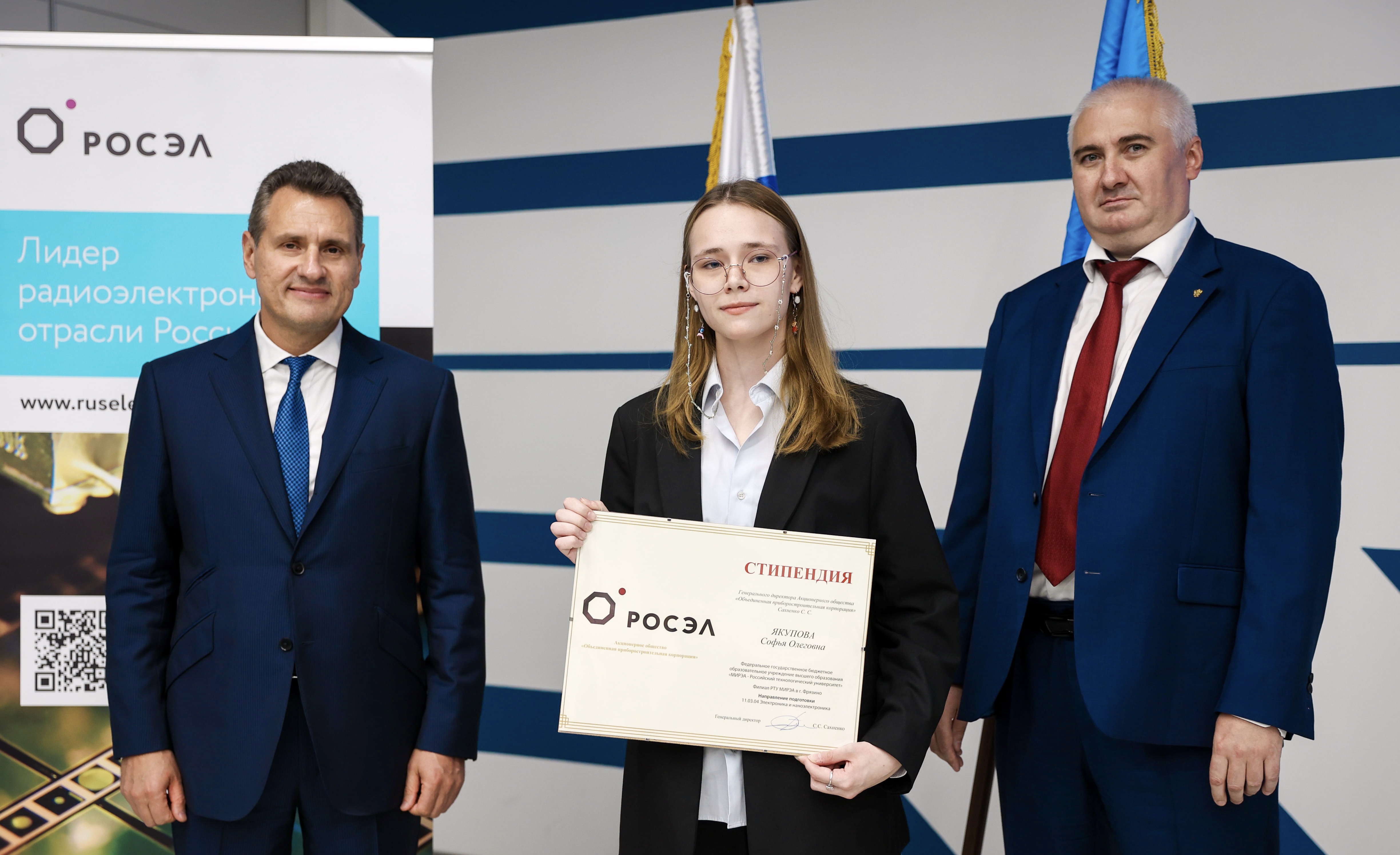 Генеральный директор Объединенной приборостроительной корпорации (управляющей компании холдинга «Росэлектроника» Госкорпорации Ростех) Сергей Сахненко вручил именные стипендии студентам РТУ МИРЭА, набравшим наивысшие баллы при поступлении в вуз на профильные специальности в области радиоэлектроники. Торжественное вручение состоялось в техноковркинге РТУ МИРЭА.
